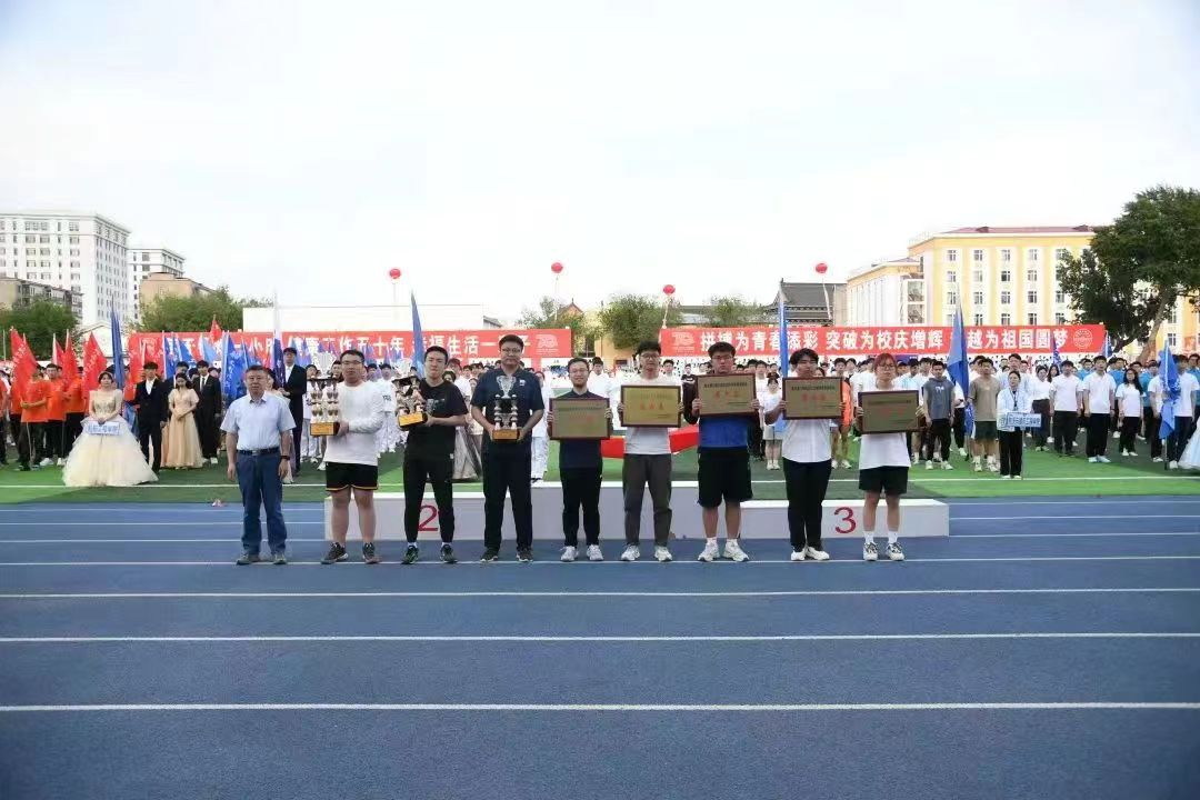 在教工组女子跳高比赛中,潘霞老师飞身越过1.05米的高度,获得了一枚宝贵的女子跳高铜牌,同时还取得了女子铅球决赛第七名的好成绩。在教工组男子铅球决赛中,徐文凯老师掷出了11.07米的好成绩,在决赛中名列第七。张胜强老师作为教工男子接力的最后一环,为学院荣誉,拼尽全力,强忍肌肉撕裂的疼痛坚持跑到了最后。