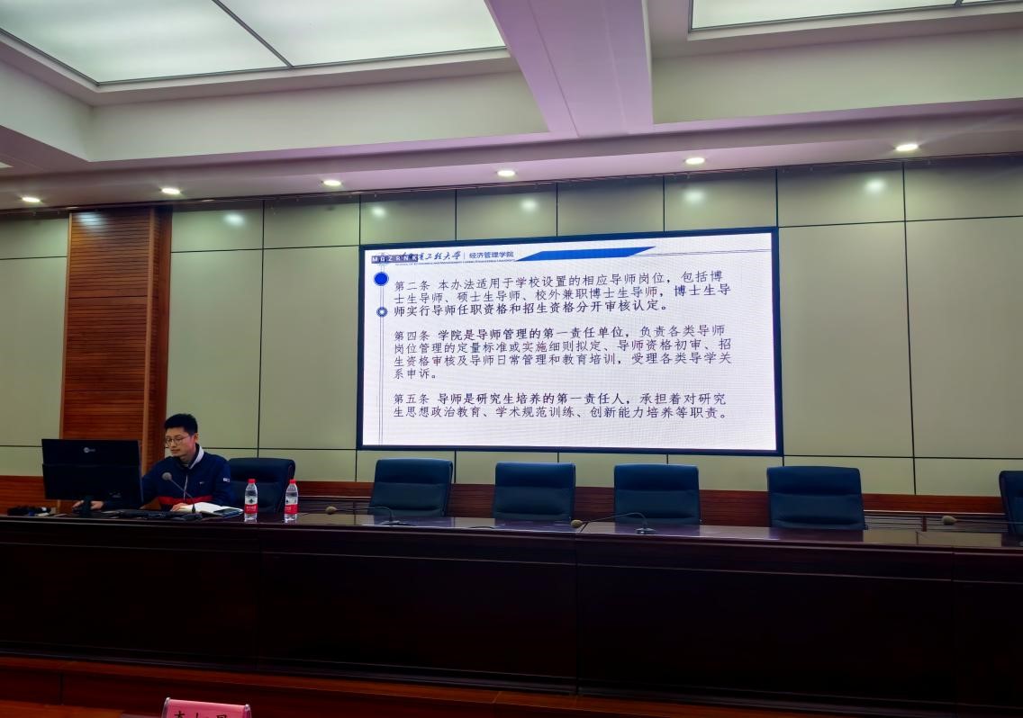 最后,院长助理胡玉真进一步强调了研究生培养过程中科研学术诚信教育方面的问题,建议各位导师严格把关,务必杜绝学术不端情况的发生。院长助理刘天森对学校最新发布的《欧冠官方网站研究生导师岗位管理办法》进行了解读。