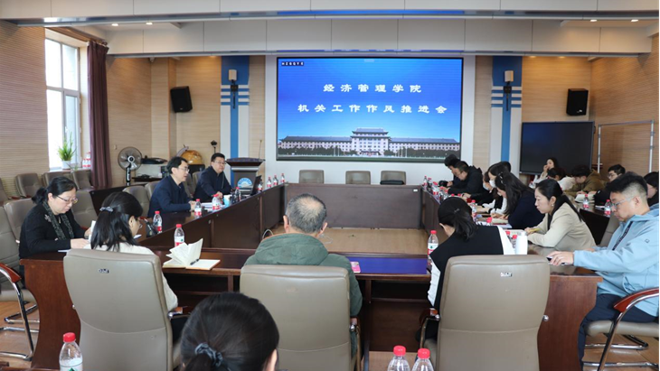 2024年3月11日上午10:20,欧冠投注官网入口机关工作作风推进会在31号楼312会议室召开。院长陈恒主持会议,党委书记于云亮、副院长王君、学院各职能部门(五办三中心)全体人员参加会议。