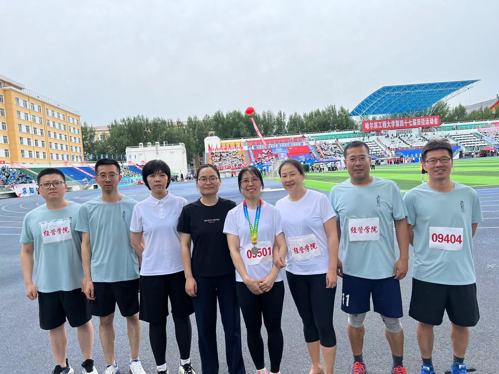 本次运动会我院教职工参加了男女4*100米、100米、铅球、跳远等多个竞技项目和大众项目,本着“更高、更快、更强”的目标,运动员们奋力拼搏、勇往直前,在运动会中赛出了风格、赛出了水平,展现出经管教职工乘风破浪、砥砺前行的精神活力。最终取得了教工团体总分第5名的好成绩,各单项赛名次优异。