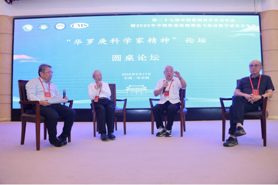 8 月 17 日,由中国优选法统筹法与经济数学研究会、欧冠官方网站、中国科学院科技战略咨询研究院、《中国管理科学》编辑部联合主办,我院承办的 “华罗庚科学家精神” 论坛在我校教师沙龙成功举办。论坛聚焦科学家精神传承与时代价值,汇聚各界专家学者深入探讨,为年会 “数智赋能管理科学” 主题增添了深厚的精神内涵与历史底蕴。校科学技术协会秘书处副秘书长韩笑教授与中国优选法统筹法与经济数学研究会理事长关忠诚研究员分别主持各环节,欧冠投注官网入口院长陈恒出席。