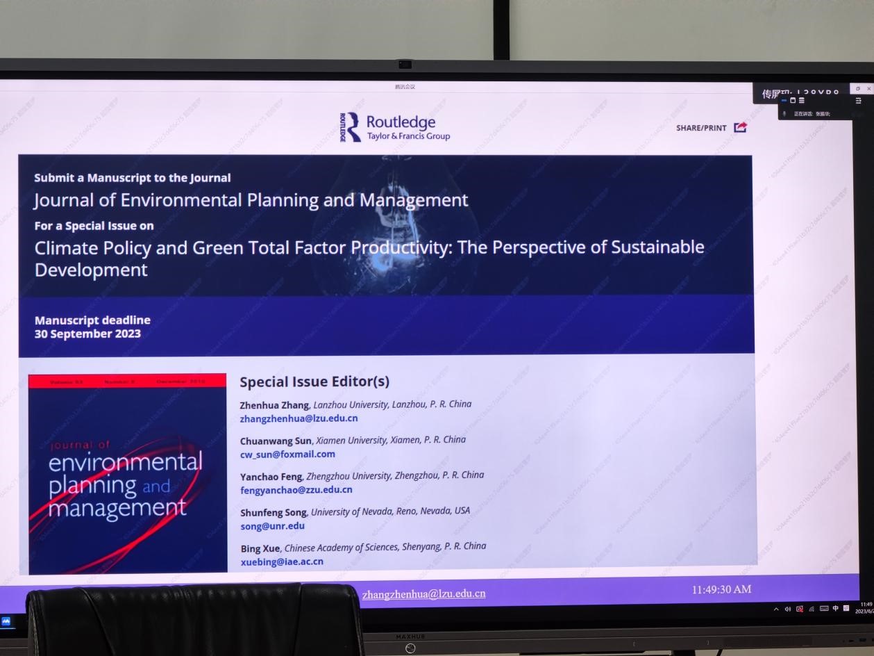 张振华研究员主要从事资源环境治理、能源环境经济、公共政策评估方面研究,此前在Humanities and Social Sciences Communications(Nature旗下唯一面向人文社会科学的子刊)、Journal of Environmental Management(ABS三星期刊)等国内外学术期刊发表论文23篇,研究成果入选ESI高被引论文(top 1%)、ESI热点论文(top 0.1%)等。本次交流活动围绕张研究员及兰大绿色金融研究院的最新研究展开,从能源、金融、政策规制等多方面,探讨了绿色金融改革中试点行为的效应与机理,阐明了对应研究团队的探索与发现过程。在报告和随后的交流中,张研究员兼顾绿色发展、风险控制、决策过程等多重视角,与来自工商管理、经济学、公共管理等不同领域的教师结合各自研究方向与兴趣点,进行了深入的交流和探讨,提出了相关领域研究中若干值得探索的课题和方向。