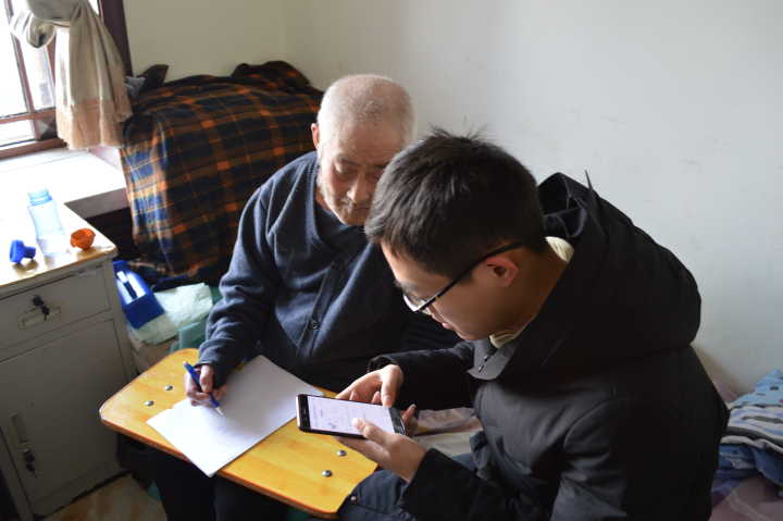恰逢元旦,敬老院亦是温暖四溢。经过简单介绍,在汪楷博的带领下,各成员开始暖冬行动。在小而温馨的走廊中、在静谧舒适的房间里,志愿者同老人亲切地交流,和老人一起看综艺节目,笑谈南北文化,抚耳倾听老人讲述儿时往事,还有热心成员的才艺表演为老人们带来更多欢乐,志愿者的陪伴是给予老人最好的元旦祝福。时至14点10分,活动结束。