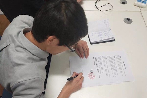 2018年10月29日,欧冠投注官网入口团委实践部部长王恒带领大一金融各班团支书与校青协微尘服务队于启航活动中心349办公室进行开心宝贝签约仪式。
