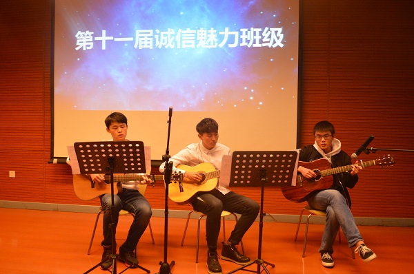 评选活动开始后,先由2015级的班长,团支书进行幻灯片展示,屏幕上依次呈现出同学们活跃的身影。不少班级还准备了富有班级特色的视频,生动还原了精彩的班级魅力。2016级的8个班级也对同学们一年多的学习生活总体情况进行了展示,随后献上了精心准备的节目。节目表演形式多样,风格各异。歌舞,小品,朗诵,层出不穷,会场掌声不断。在评选活动的尾声,2016级辅导员董治安对同学们的展示做出了中肯的评价,指出要突出展示班级独有的魅力,重点强调新时期要搞好学习工作,发扬展现班级特长。活动于20时结束。