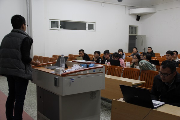培训开始,陈景东首先围绕PPT的设计进行讲解,主要强调了风格、板式、元素。随后,他向各位学生干部展示了几份优秀的PPT作品,并对每个作品进行具体的评价。接着他又对英语PPT的制作要点进行强调。培训最后,他向大家叙述有关PPT模版的使用及其对制作PPT的作用。培训于20时结束。