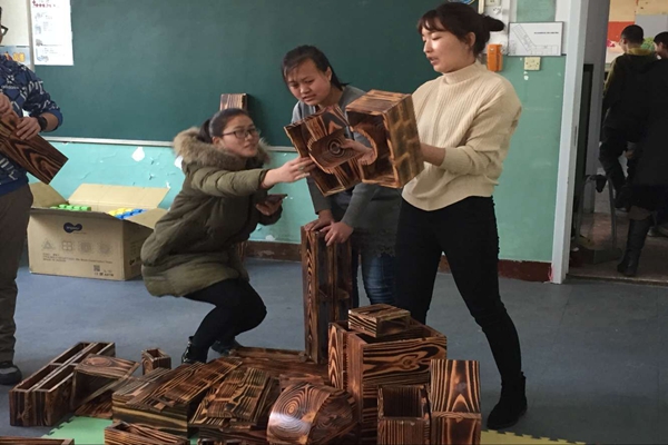 抵达燎原小学后,参与活动人员自行分成两组,对两间教室进行打扫布置。在与燎原小学同学们的相互协助下,对墙壁上杂物和地面清理,随后将课桌椅仔细擦拭,很快将教室清理完毕。之后协助老师搭建积木,所有成员积极参与,或是提出建议或是实际动手搭建,配合之下完成两组积木。本次活动于11点结束。