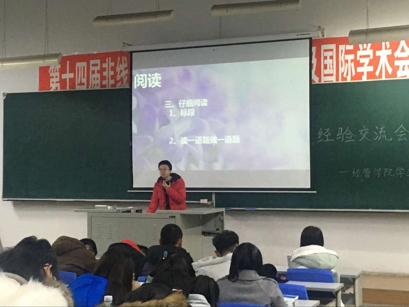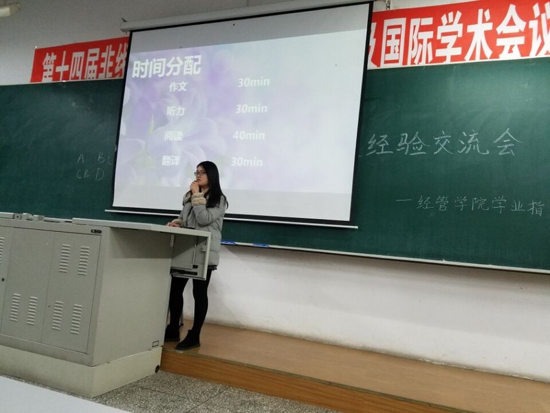 2016年11月20日晚6时30,欧冠投注官网入口学生会学习指导中心学业知道部于S103教室举办学子论坛之助力四级经验交流会。本期论坛邀请嘉宾陈晨、王可嘉,两位在四六级考试中都取得优异成绩。全体大一学生参加了本次活动。