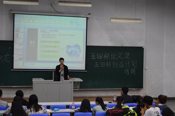 首先由王寅苏为同学们介绍五四杯科技作品申报技巧及申报书的内容,并讲解“五四杯”论文的结构,论文写作技巧及论文写作过程的注意事项,以及如何运用中国知网撰写论文。