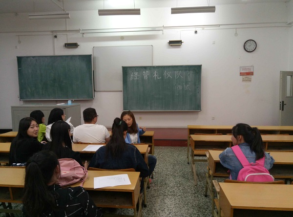 面试在同学们下晚自习后开始进行,开始前,女生部成员跟同学们进行了交流互动,以减轻她们的紧张感。面试分为自我介绍,展现了她们的才华和技能,和礼仪队负责人提问。多才多艺的同学们向大家展示了音乐、朗诵等精彩的表演,对于提问同学们也是对答如流,显示出大家对进礼仪队的信心和热情。晚10点面试结束,最后由礼仪队负责人对本次面试做出总结。