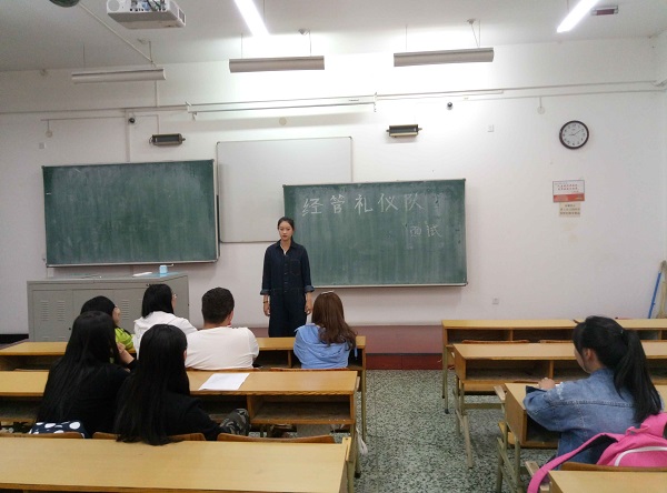 9月21日晚9点,欧冠投注官网入口礼仪队面试于21B412教室顺利进行,欧冠投注官网入口学生会副主席周天、礼仪队队长修雪及女生部成员任评委,部分大一新生参加面试。