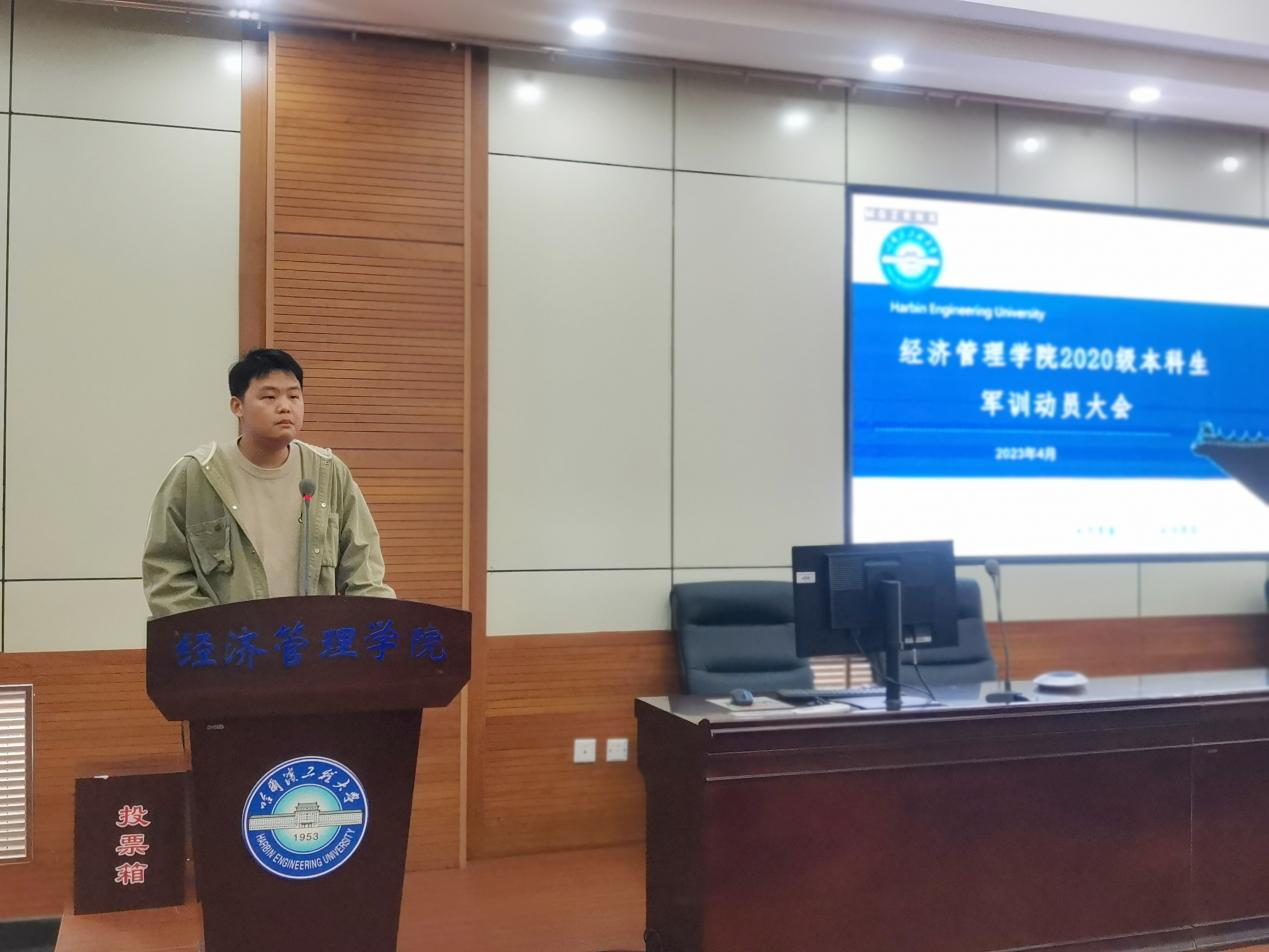 2023年4月14日12时50分,欧冠投注官网入口于31号楼202室召开2020级军训动员大会。本次大会由辅导员吴昊格主持,欧冠投注官网入口党委副书记杨溪淼出席会议并发表讲话。