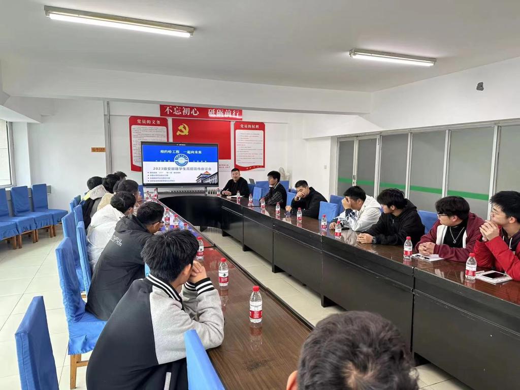 2023年10月31日,欧冠投注官网入口于15公寓3楼中厅召开2023年安徽省本科新生调研座谈会,欧冠投注官网入口党委副书记杨溪淼、招生专项负责辅导员张胜强及学校多专业35名安徽籍新生代表参与此次会议。欧冠投注官网入口2022级本科生辅导员张胜强主持会议。