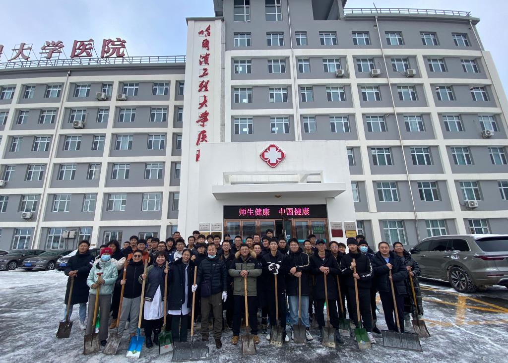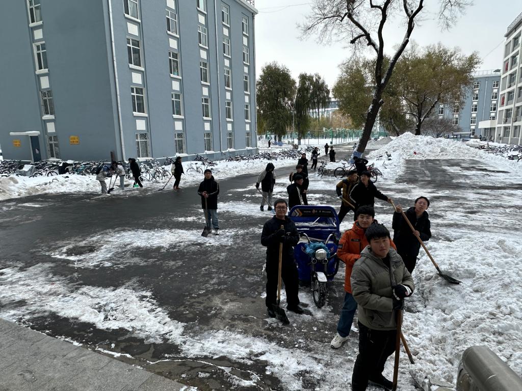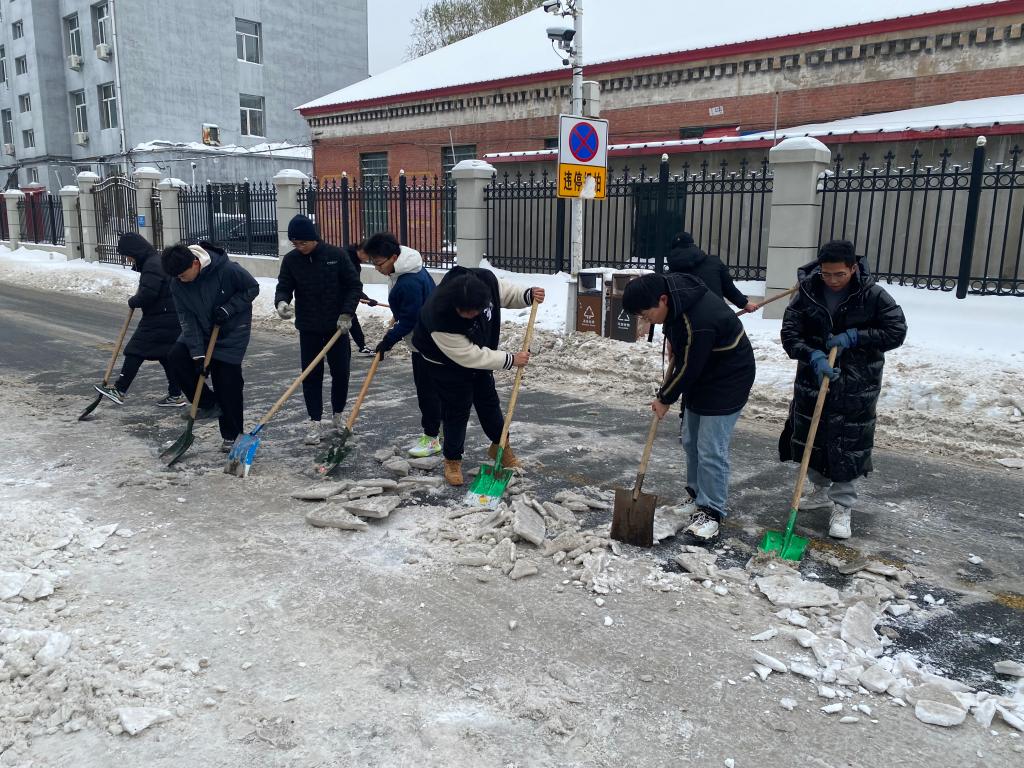 11月6日,哈尔滨迎来首场暴风雪。飘雪的冬日,整个城市银装素裹,美不胜收,但这场大雪也给我们的校园生活带来了困扰。厚厚的积雪给出行带来了不便,也给前来就医看病的师生带来了安全隐患。在这样的情况下,来自校医院和15、19公寓社区的志愿者们,用行动诠释了“奉献、友爱、互助、进步”的志愿服务精神。
