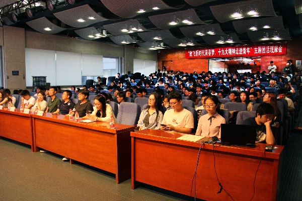 6 月9日18时30分,欧冠投注官网入口于启航四楼学术报告厅组织开展以放飞新时代青春梦,十九大精神走进青年为主题的团活观摩会。学生辅导员、部分学生干部以及全体2017级本科生参加此次观摩会。