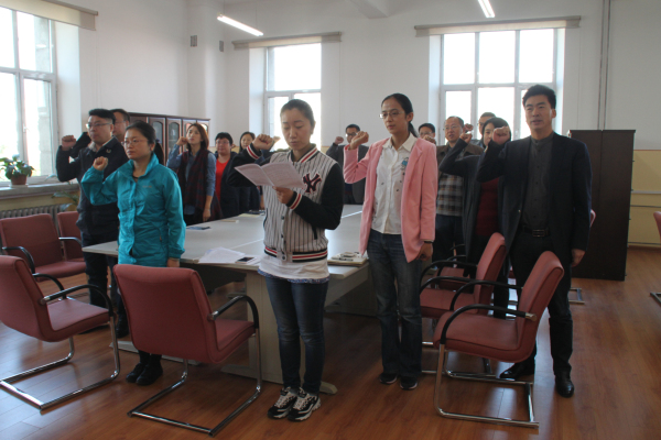 第三部分,重温入党誓词。支部大会上,全体党员在支部书记韩微通知的带领下,共同以集体宣誓的方式,重温入党誓词。