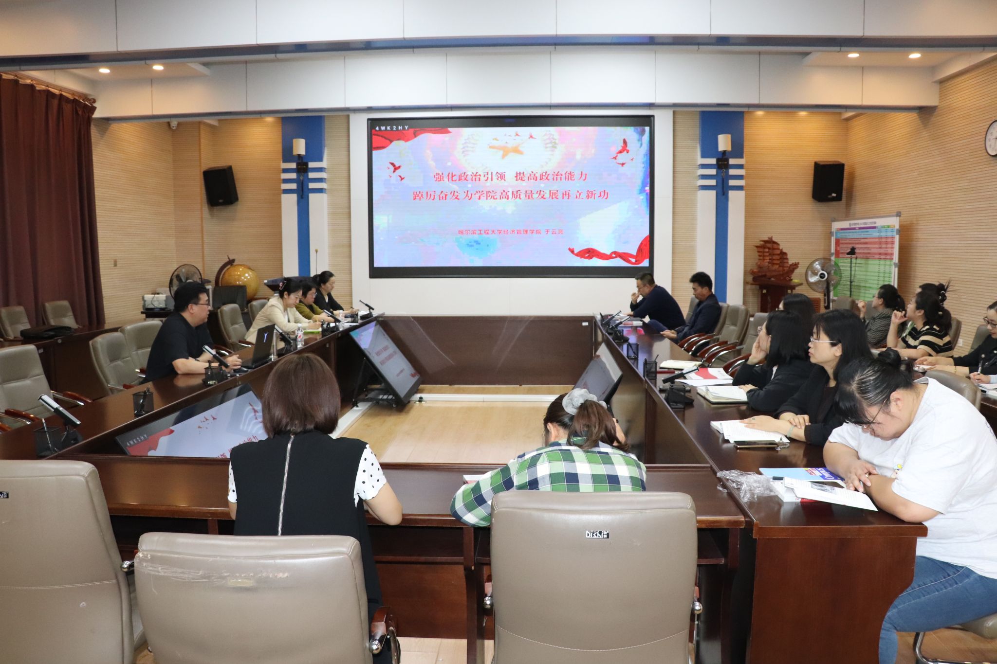 为深入学习贯彻党的二十届三中全会精神,2024年9月29日,学院党委书记于云亮同志,以“强化政治引领、提高政治能力、踔厉奋发为学院高质量发展再立新功劳”为题主讲党课,院直党支部全体党员教师参加学习交流。
