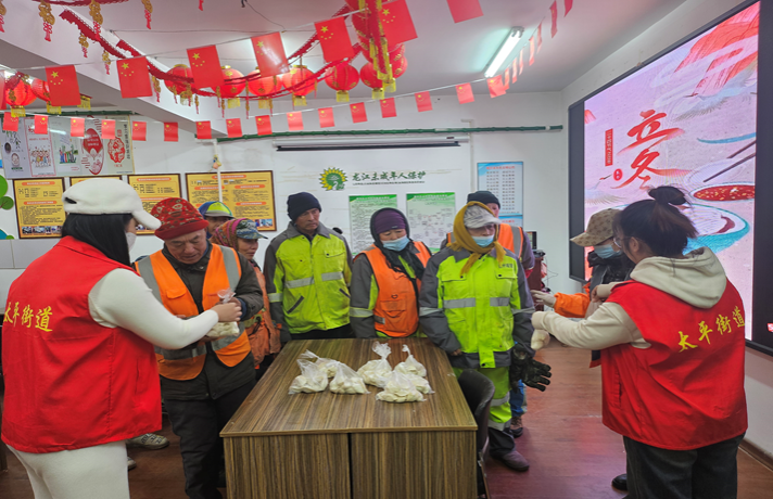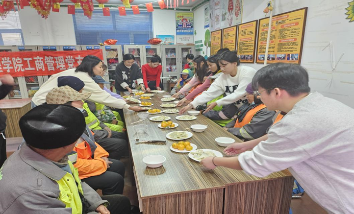为了让工作在城市管理一线的环卫工人感受到关爱和温暖,11月6日下午,工商管理党支部联合泰达社区为道外区保洁二队的环卫工人们包饺子、送饺子,让立冬之日处处充满温情。